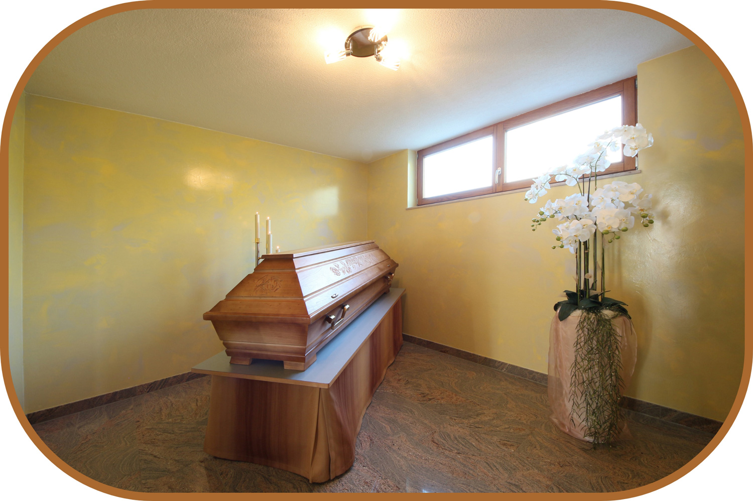Im Abschiedsraum haben Sie rund um die Uhr Zeit, am geöffneten oder geschlossenen Sarg Abschied von Ihrem liebsten Menschen zu nehmen.