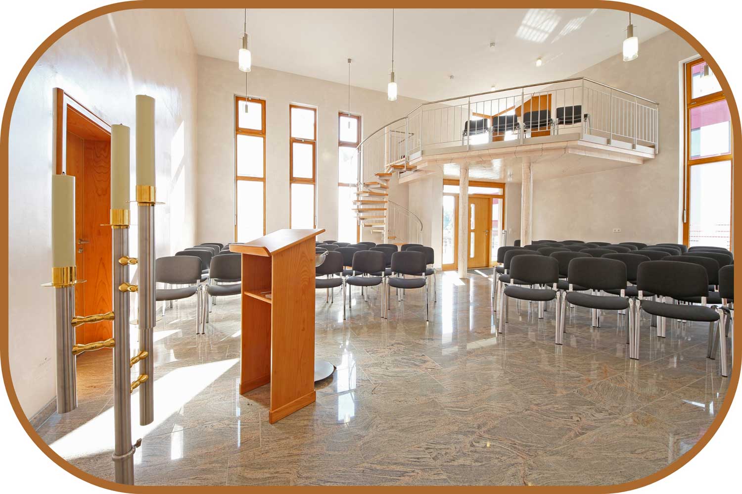 Einzigartig in unserer Region ist unsere hauseigene Trauerhalle mit Orgel und gehobener technischer Ausstattung, in der bis zu 70 Personen Platz haben und gemeinsam Abschied nehmen können.